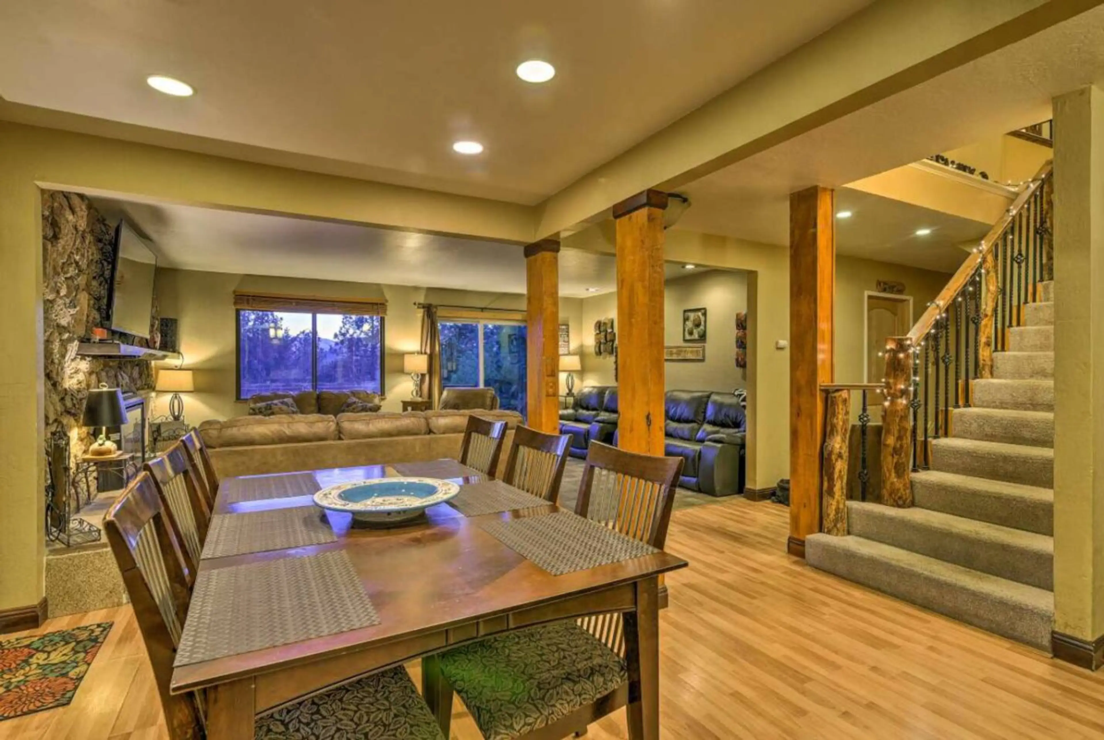 Beautiful bear theme, in Montgomery Estates, 4-beds/3-baths, w/ timeless antiques. 2,562 sq ft, a dreamy winter retreat. Indulge indoors with music, cook, play pool/pingpong, & cozy TV nights. Backyard turns into a snowy playground for snowball fights & snowman-building with loved ones. After chilly...